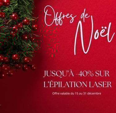 Illuminez votre peau pour les fĂȘtes et offrez-vous la sensation incomparable dâune Ă©pilation dĂ©finitive laser, rĂ©alisĂ©e avec notre technologie haut de gamme et sous encadrement mĂ©dical.